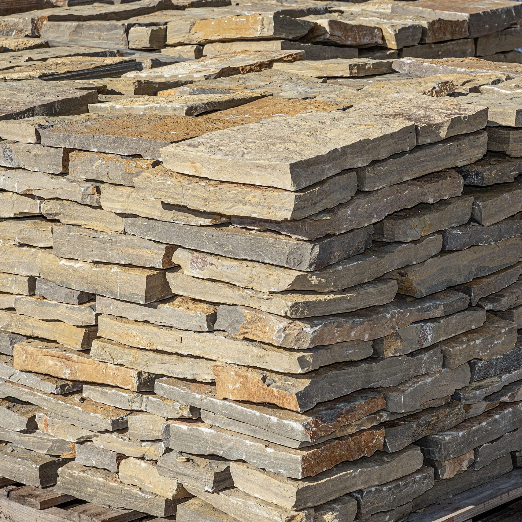 – Piedra irregular “raíces” caracterizada por las vetas negras entre sus tonos ocre, crema, gris y marrón. – Perfecta para revestir muros, pavimentos, y la decoración de jardines en general.